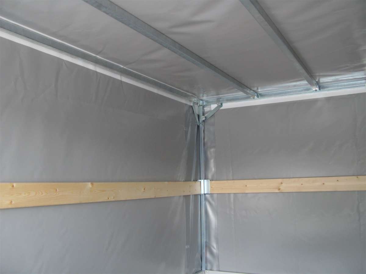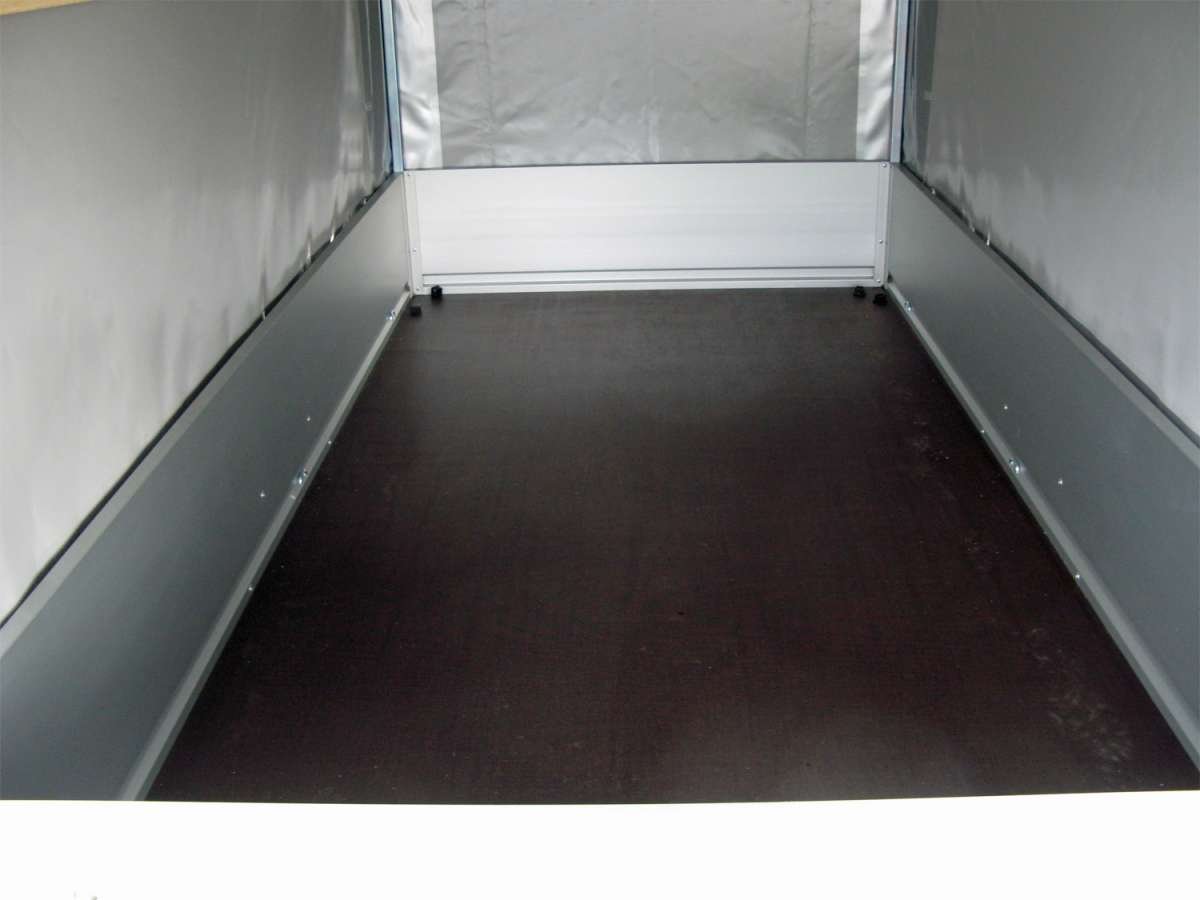 - Bâche commerciale renforcée, aluminium argenté, lattes transversales, verrouillage métallique par rotation, ouverture sur tous les côtés avec fermeture à tirette, fabricant : Planen-Center-Ulm