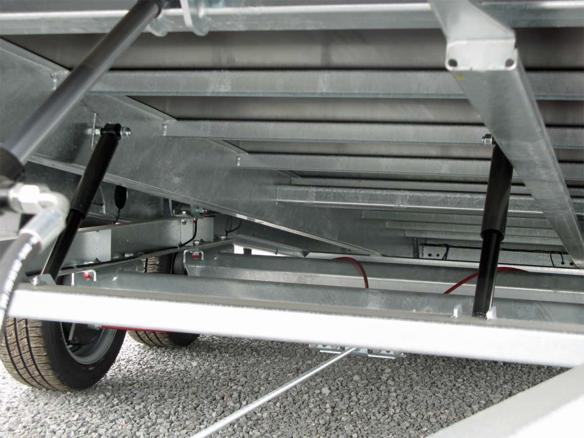 Elle simplifie au maximum chaque opération : la plateforme hydraulique s’incline facilement à l’aide d’une pompe manuelle et des vérins à gaz facilitent le déploiement de la rampe. Grâce à sa faible hauteur de chargement de 650 mm, l’angle d’attaque reste très faible, ce qui permet de charger aisément même les engins et véhicules bas. Pour faciliter le chargement des véhicules sur la remorque, un support de treuil robuste, équipé d’un treuil, est disponible en option. La technologie de châssis sophistiquée du MTK Allcomfort garantit une maniabilité exceptionnelle.