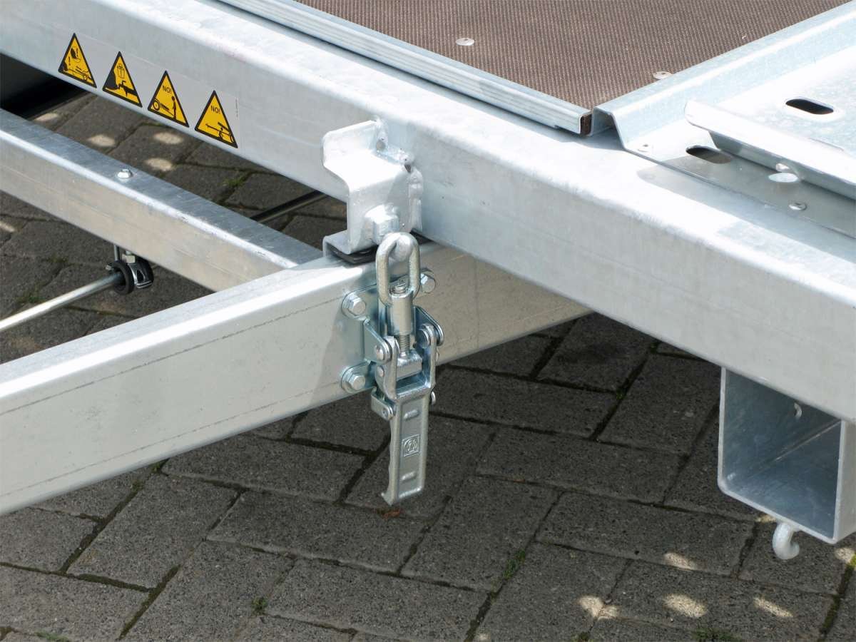 Avec ou sans rampes de chargement supplémentaires, la gamme de porte-voitures « ATOUR » peut accueillir pratiquement tous les véhicules. La version 4 mètres est équipée de série de deux rampes de chargement robustes, réglables en continu pour s’adapter à la largeur de voie souhaitée. L’« ATOUR Grande » se passe totalement de rampes de chargement, celles-ci étant intégrées à la plateforme basculante sur sa longueur utile de 4,90 mètres. Sa plateforme de chargement galvanisée fait également office de plateforme inclinable mécaniquement et réglable en continu. En position inclinée, le véhicule peut soit monter directement sur la plateforme, soit y être hissé.