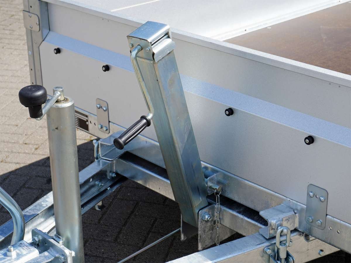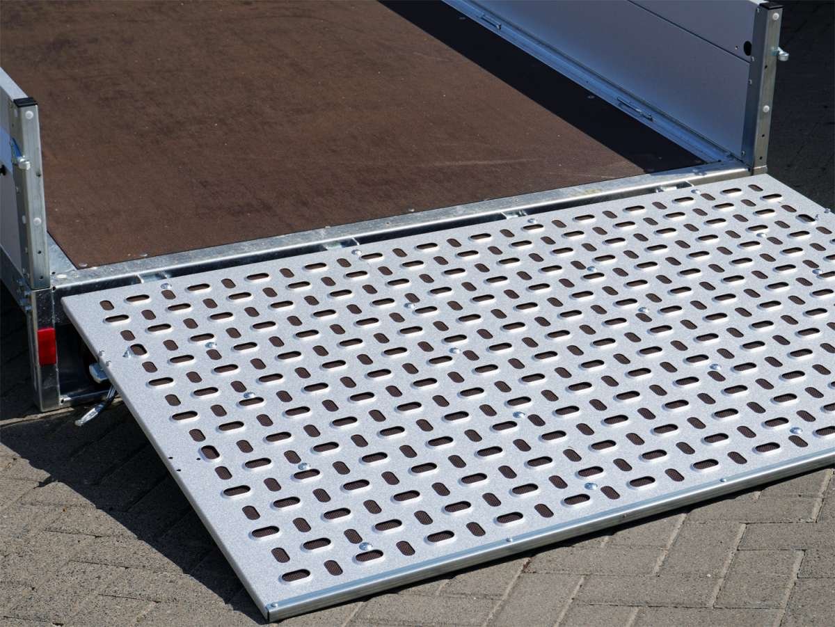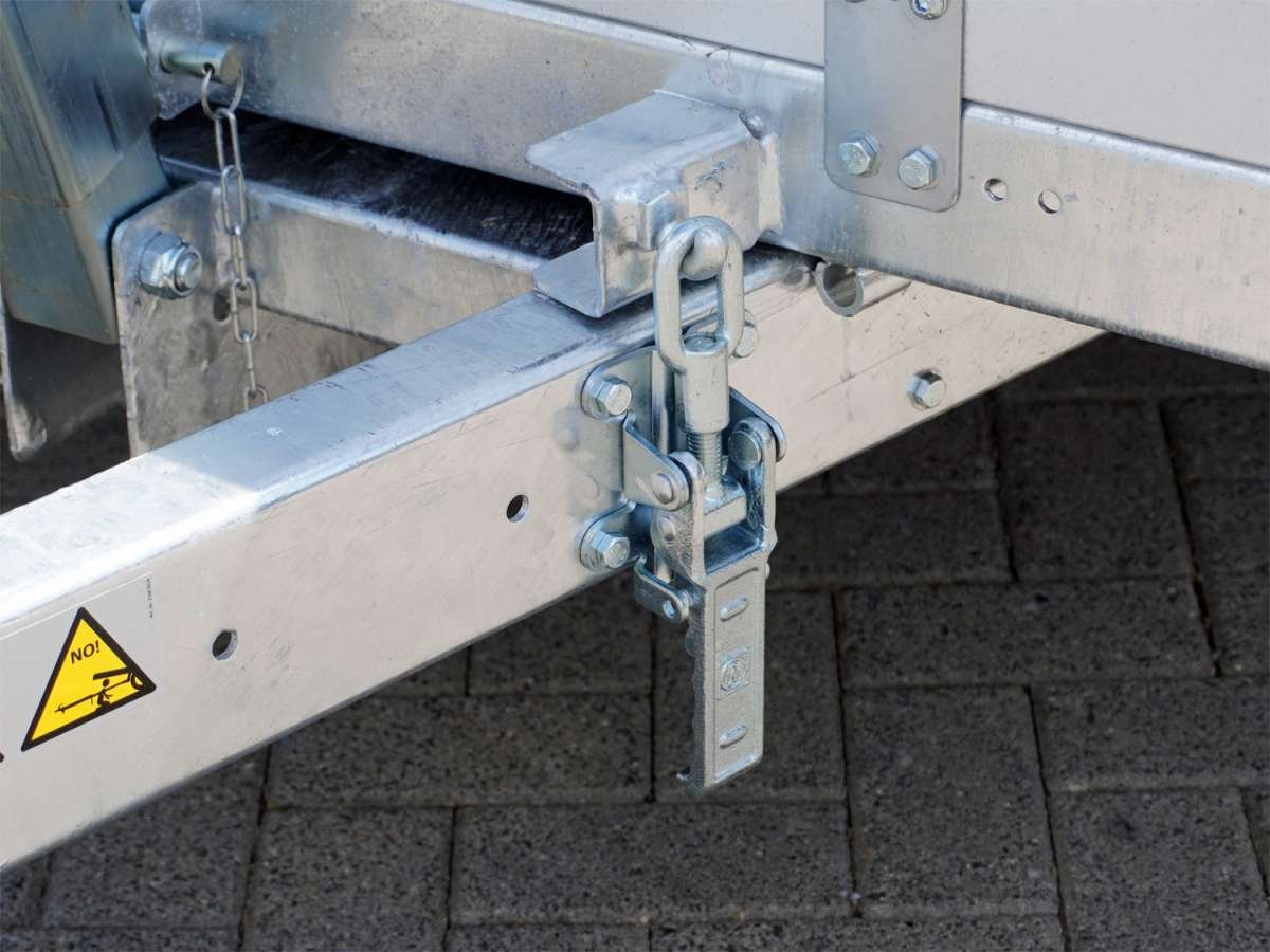 - Châssis et plateforme basculante : construction galvanisée à chaud et soudée par vis