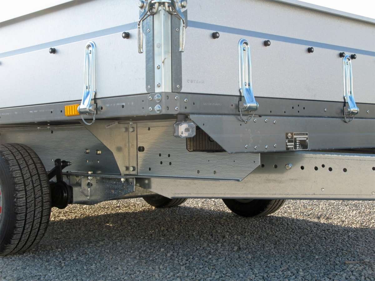 Toutes les remorques SySTEMA freinées d’un poids total autorisé en charge (PTAC) de 850 kg ou plus sont équipées d’amortisseurs de série. Ces remorques peuvent être immatriculées directement auprès du service d’immatriculation des véhicules pour une vitesse de 100 km/h.