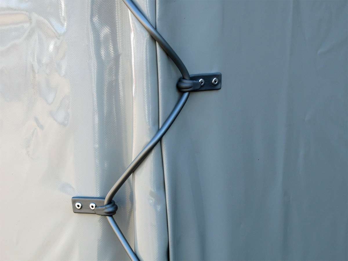 - Bâche (grise) et cadre inclus, hauteur 150 cm (livrée séparément), hauteur utile 185 cm