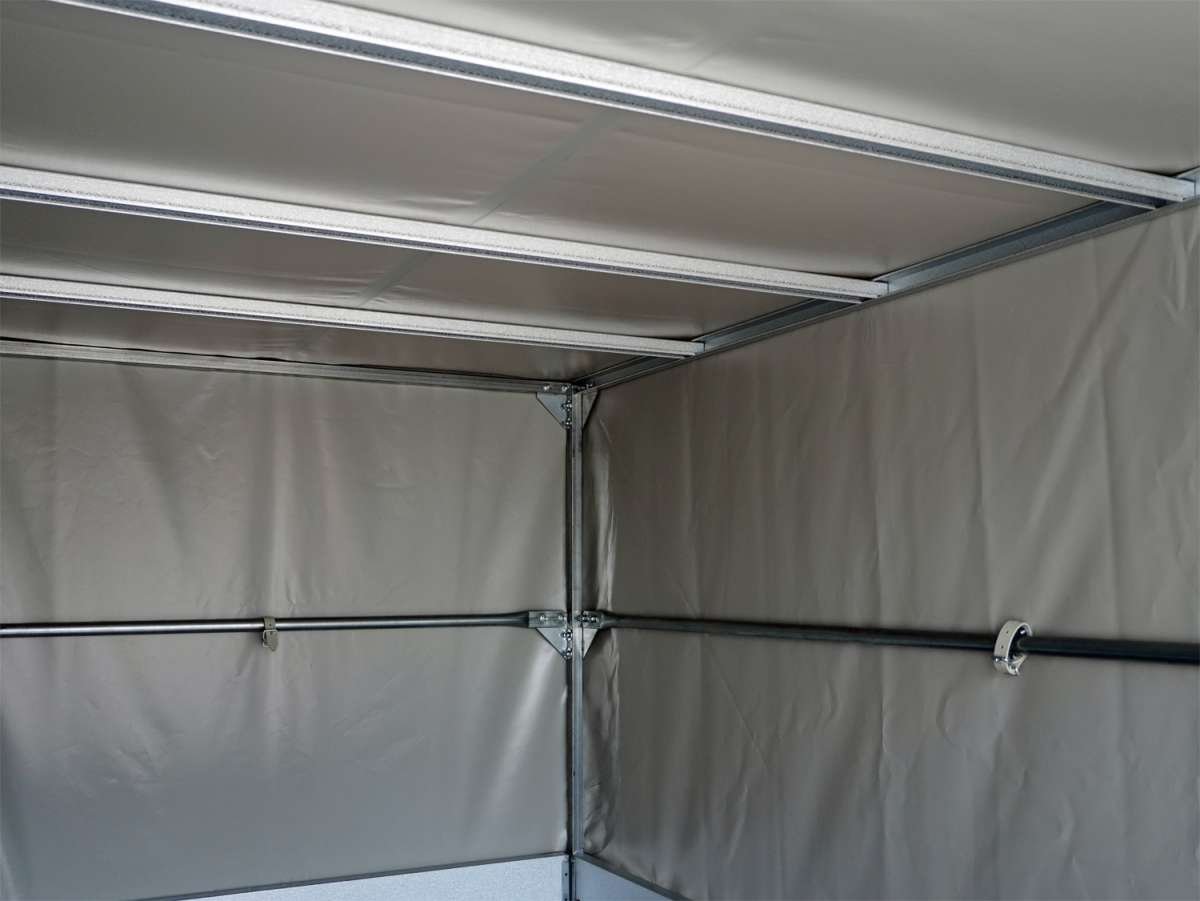• Hauteur intérieure 135 cm (paroi latérale et superstructure en bâche)