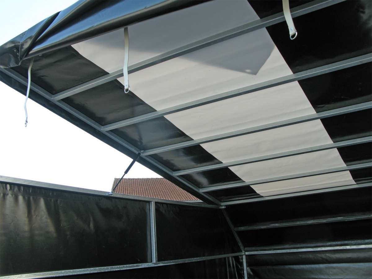 Caisse en bâche Unsinn d’origine avec toit repliable – couleur au choix, hauteur 1500 mm ou 1700 mm, entièrement assemblée à l’intérieur, cadre :