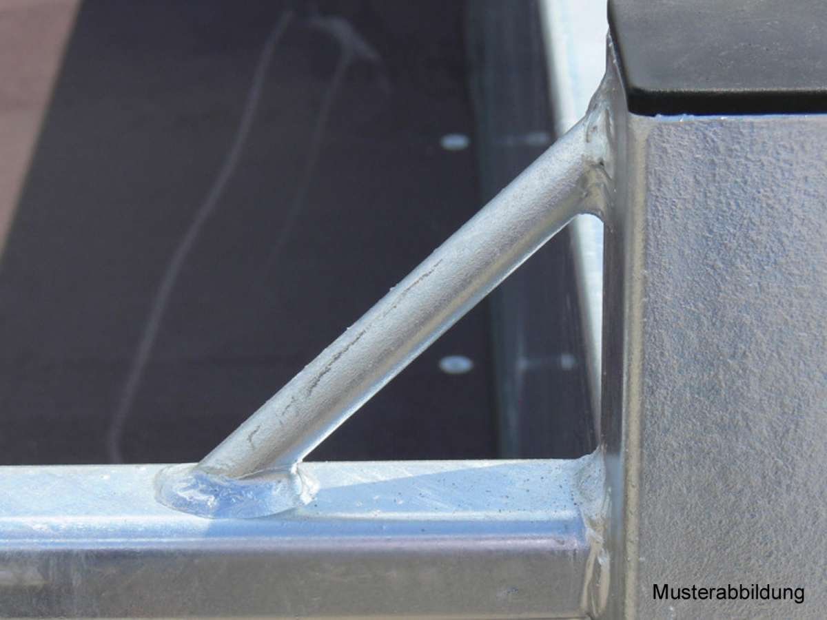 - Construction en profilés latéraux robustes en acier, entièrement soudés et galvanisés à chaud