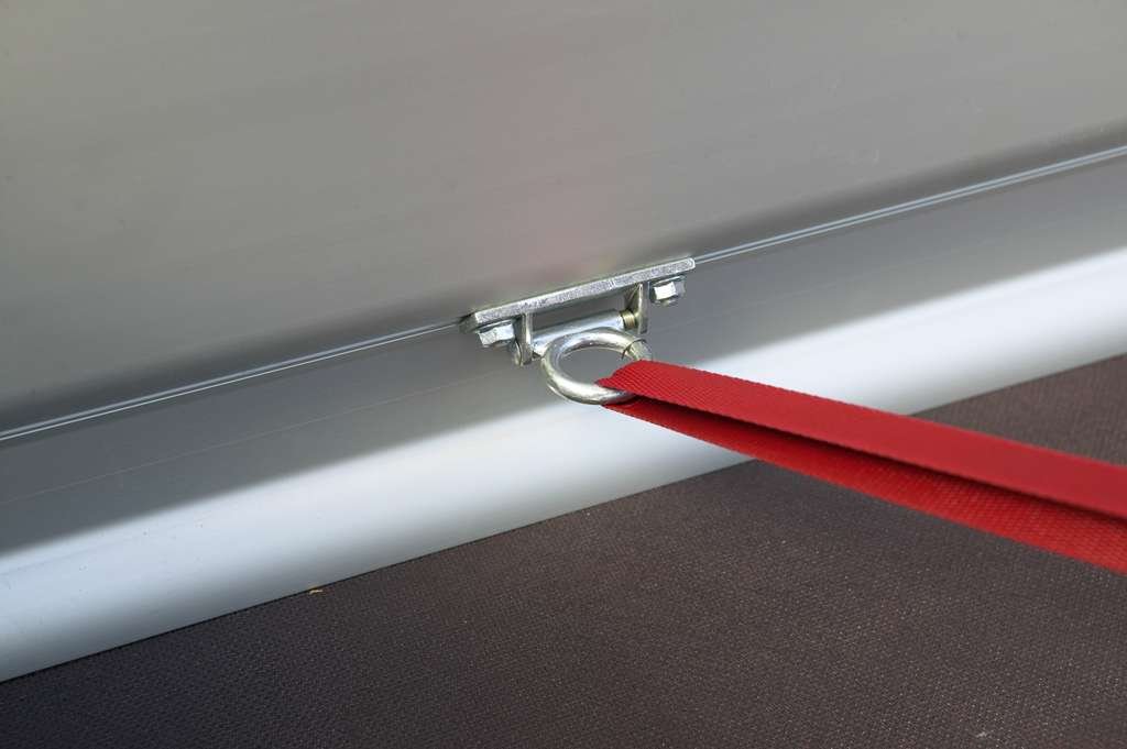 • 4 anneaux d’arrimage encastrés et rabattables, montés dans la paroi latérale, pour une fixation sûre du chargement.