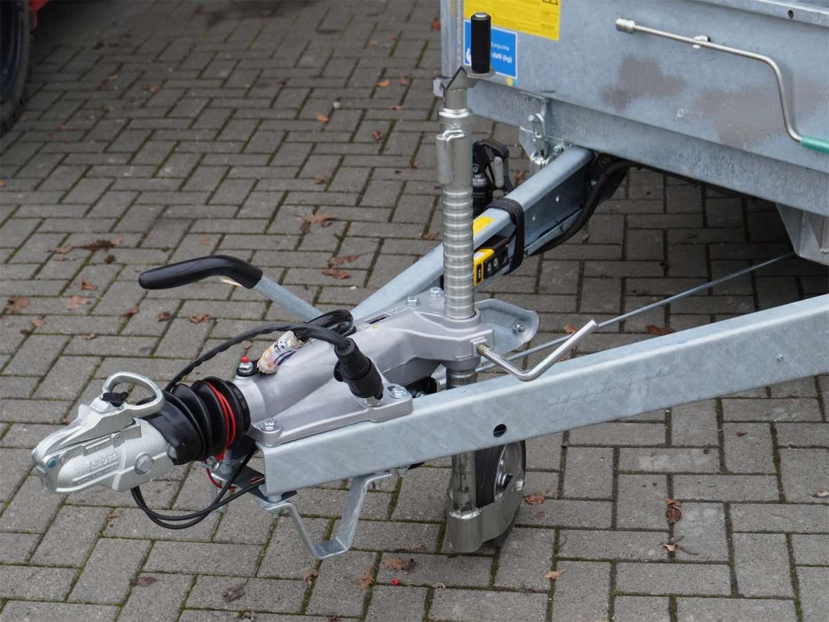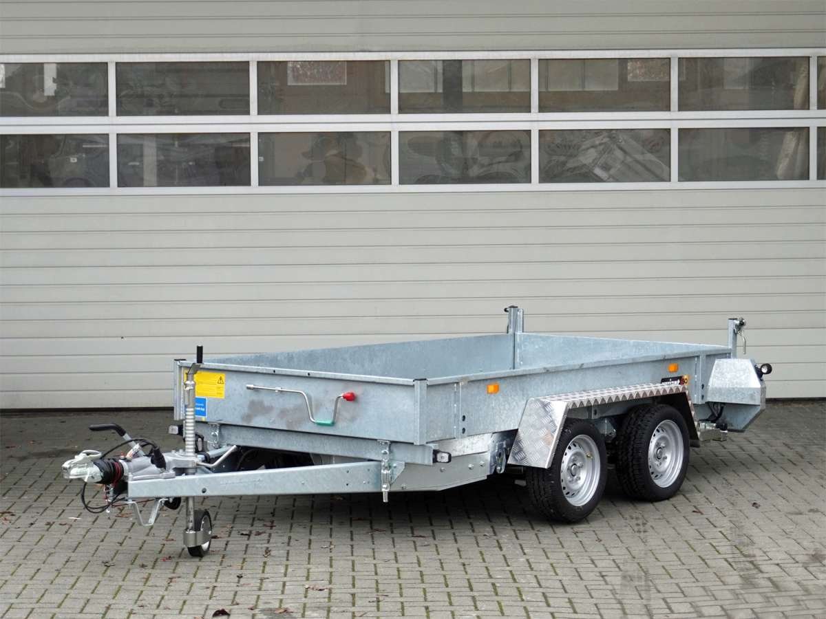 La remorque est équipée de deux essieux, et les roues, montées latéralement sur le châssis, assurent une stabilité accrue lors du transport de charges lourdes. Son plancher robuste en acier et contreplaqué, ainsi que ses parois latérales en acier, garantissent une grande résistance à l’usure et une longue durée de vie, même en cas d’utilisation intensive.