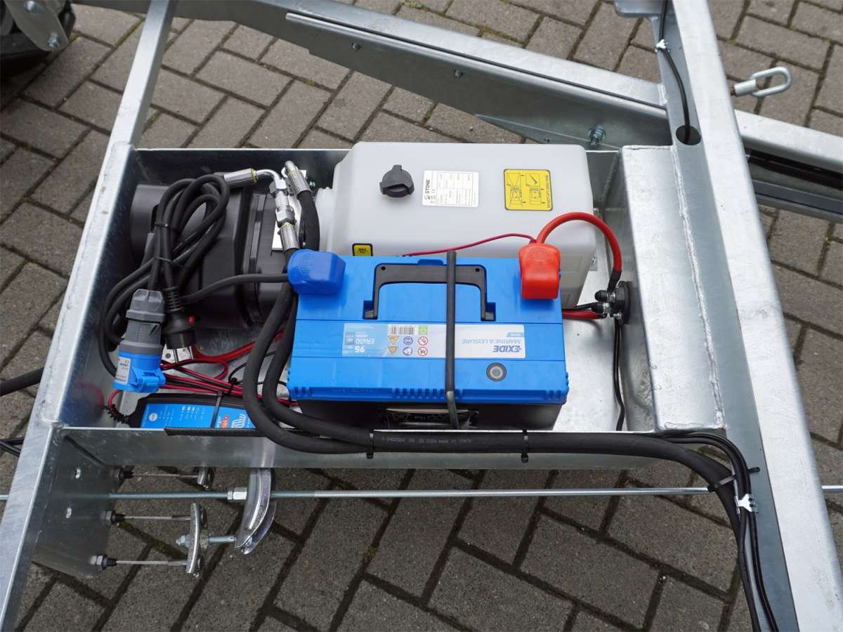 • Benne basculante électrohydraulique, avec batterie et chargeur.
