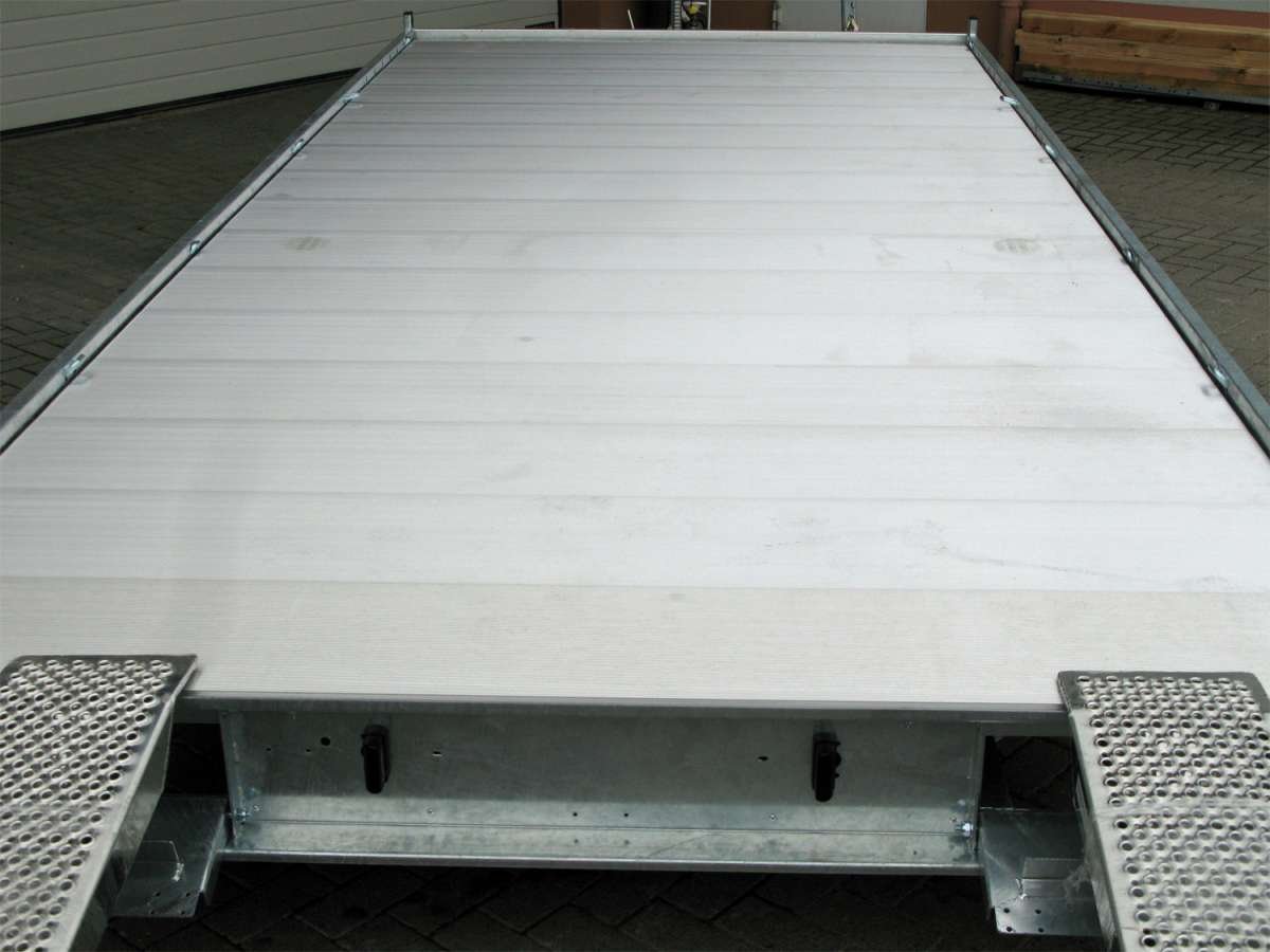 Équipée de trois essieux et de freins, elle garantit stabilité et sécurité, même en cas de charges importantes. Son plancher en aluminium durable offre une haute résistance aux intempéries et à l’usure, et son treuil manuel facilite le chargement de véhicules ou d’engins.